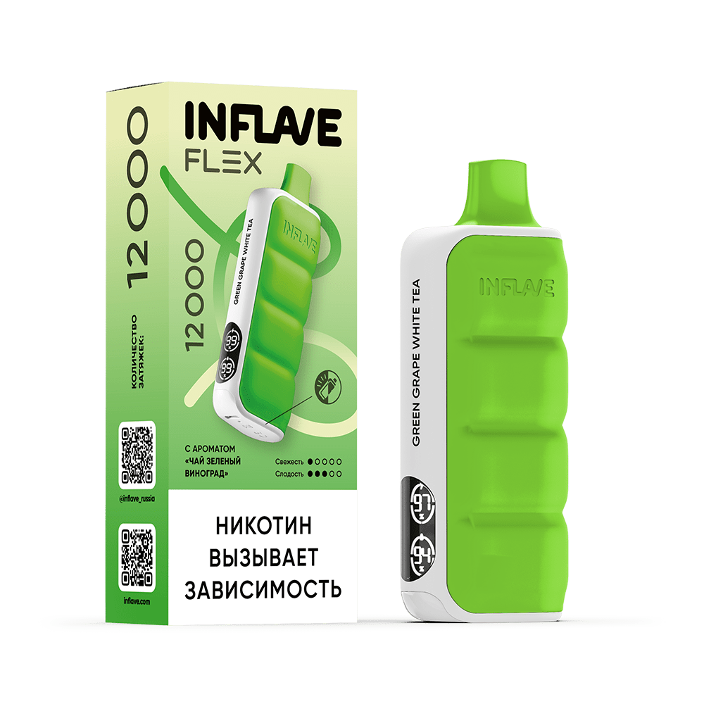 Количество затяжек, шт12000 | Крепость, %2 | ЛинейкаINFLAVE FLEX 12000 |